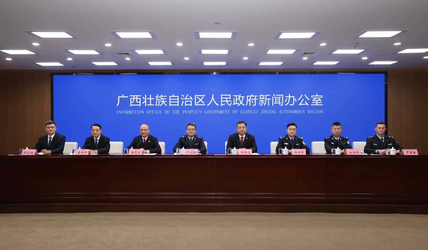 自治区高级人民法院副院长陆洪鸣,自治区检察院检委会专职委员杨远波,自治区公安厅经侦总队副总队长张郑峰,自治区市场监督管理局综合执法局局长、二级巡视员罗耀敏,人民银行广西壮族自治区分行副行长唐剑冰,南宁海关缉私局局长欧阳玮,参加新闻发布会并回答记者提问。发布会由自治区党委宣传部新闻发布处副处长巩光胜主持。