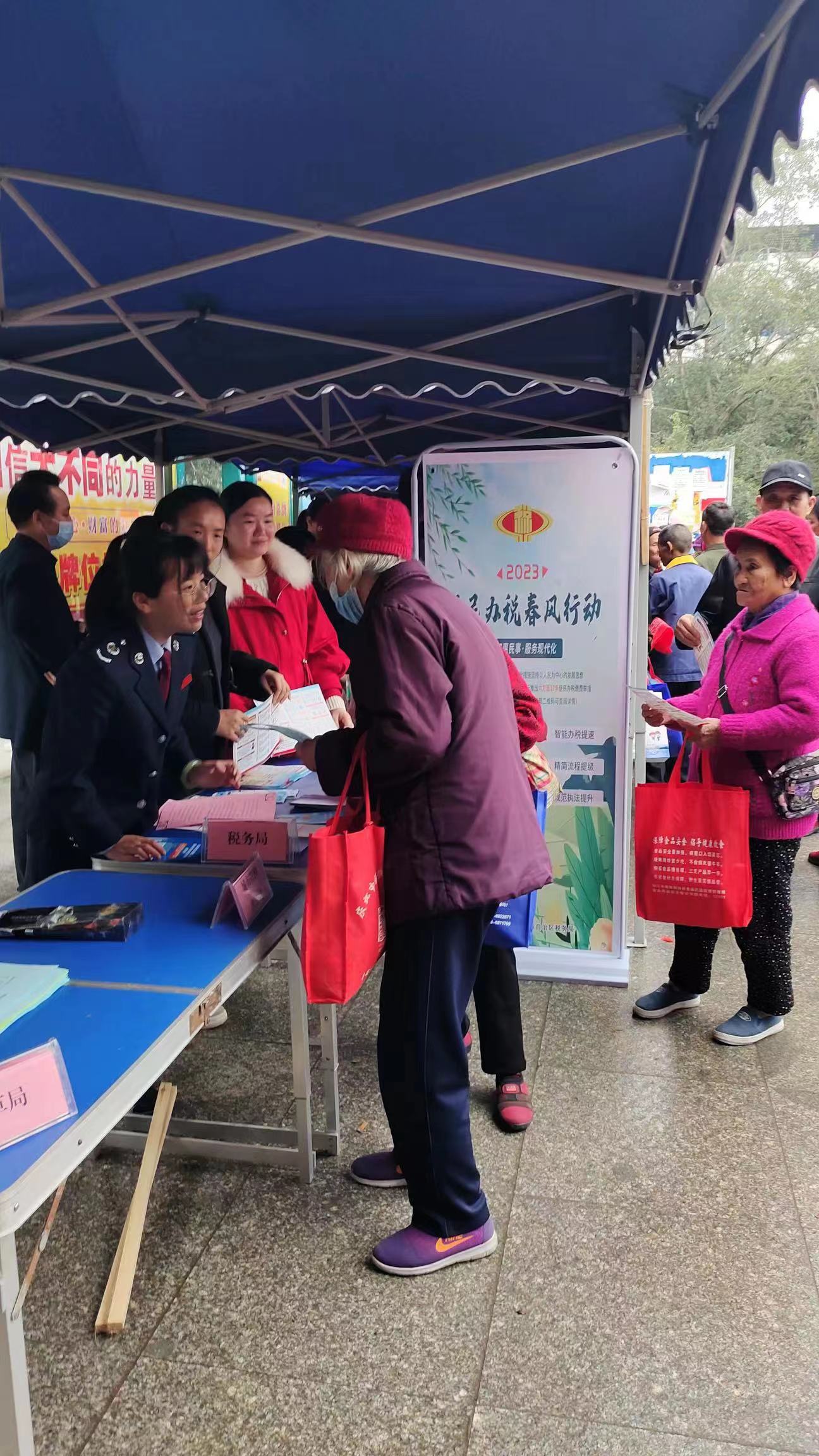 在宣传活动现场,环江县税务局摆起了“送法摊位”,发放消费者维权宣传单及民法典知识宣传册,向群众宣传消费者权益保护的重要性,给群众讲解了税收优惠政策和常见的发票违法行为。发票既能证明商品的来源,还是商品更换保修的证明、事故索赔的依据。环江县税务局青年干部提醒大家在日常的消费过程当中,要养成取得发票的习惯,来维护自身的合法权益,也避免给一些商家提供偷税漏税的机会,共同营造一个良好的营商环境和诚信纳税氛围。