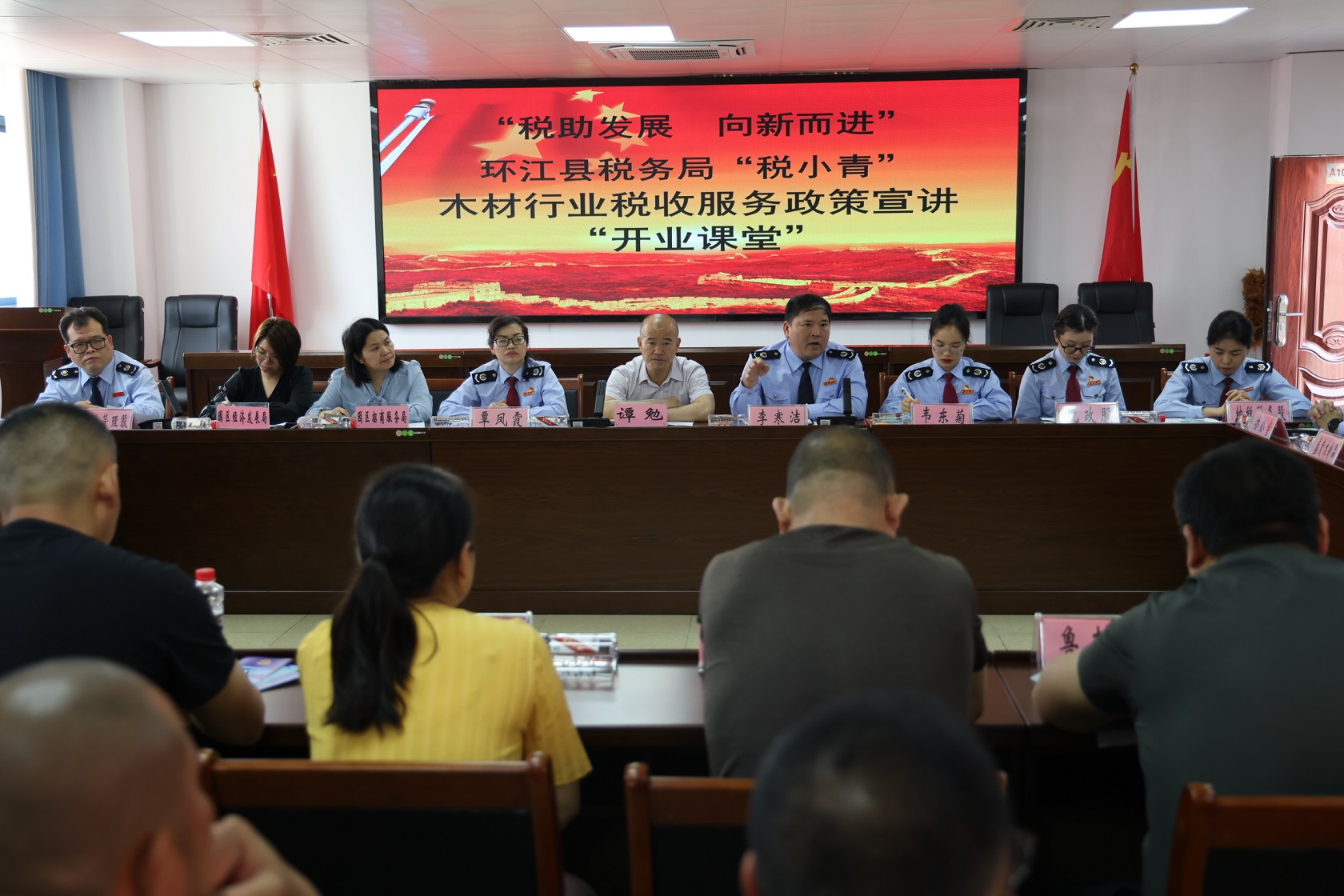 为了深入了解新引进的木材加工企业的涉税诉求,也为了更好服务木材加工企业,助力企业高质量发展,4月2日,环江县税务局组织“税小青”服务团队到河池·环江工业园区开展“税助发展 向新而进”木材行业税收服务政策宣讲“开业课堂”活动,23家环江县新引进的木材加工企业参加本次活动。