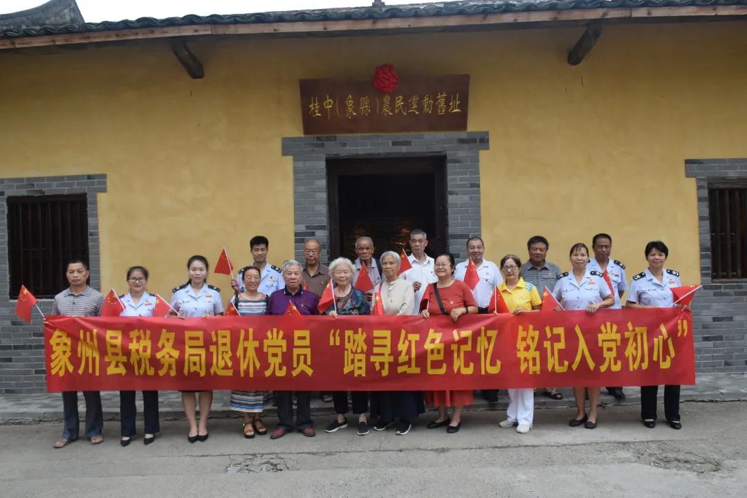 象州县税务局组织退休党员到桂中(象县)农民运动旧址开展“踏寻红色记忆 铭记入党初心”活动,通过讲解员的讲解,依次参观农民革命全国展室厅、广西展厅、桂中展厅、象县展厅等11个展厅,感受革命先辈为农民运动斗争抛头颅、洒热血,勇于斗争的大无畏革命精神。老党员们在红色大讲堂,通过开展党史故事大家讲、唱红色歌曲、重温入党誓词等活动重温入党初心。
