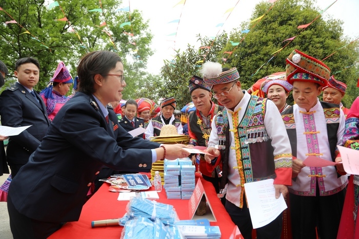 “山歌是我们本地苗族、壮族群众茶余饭后最喜闻乐见的娱乐活动,我们借助广西“三月三”民歌节的影响力,把服务民族地区税收政策融于山歌,以传唱互动方式,更好地把党的民族政策及惠企利民的税费政策传递出去、宣传出去,营造宣传氛围,增进民族团结。”税收宣传服务队员罗敏在现场说道。