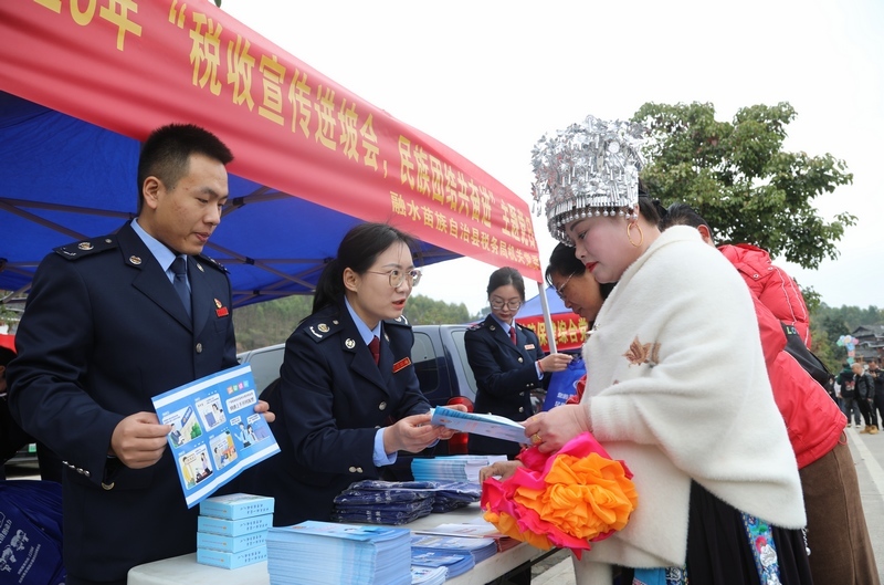 近日,融水苗族自治县税务局充分利用苗族系列坡会民俗节庆特色,以“接地气、聚人气、暖民心”的方式,创新推出“坡会传情+服务下沉”宣传模式,将税费政策、社保政策宣传与国家级非物质文化遗产苗族坡会深度融合,实现税费政策普及与服务保障“双融合”。