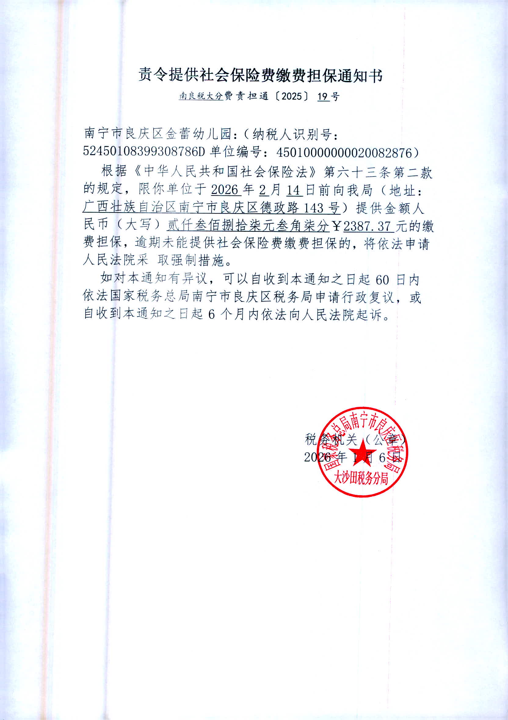 2.《责令提供社会保险费缴费担保通知书》南良税大分费责担通〔2025〕19号
