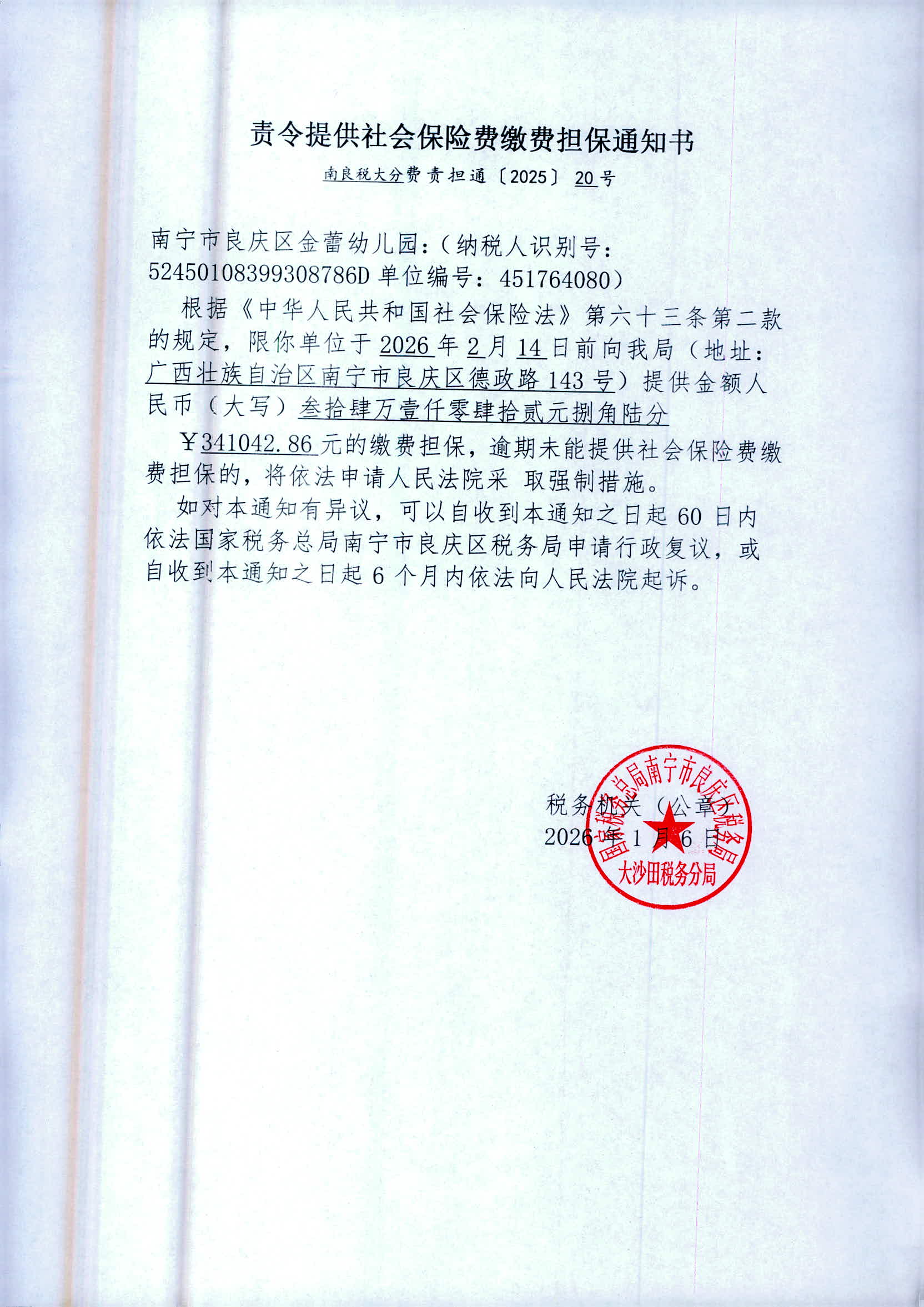 3.《责令提供社会保险费缴费担保通知书》南良税大分费责担通〔2025〕20号