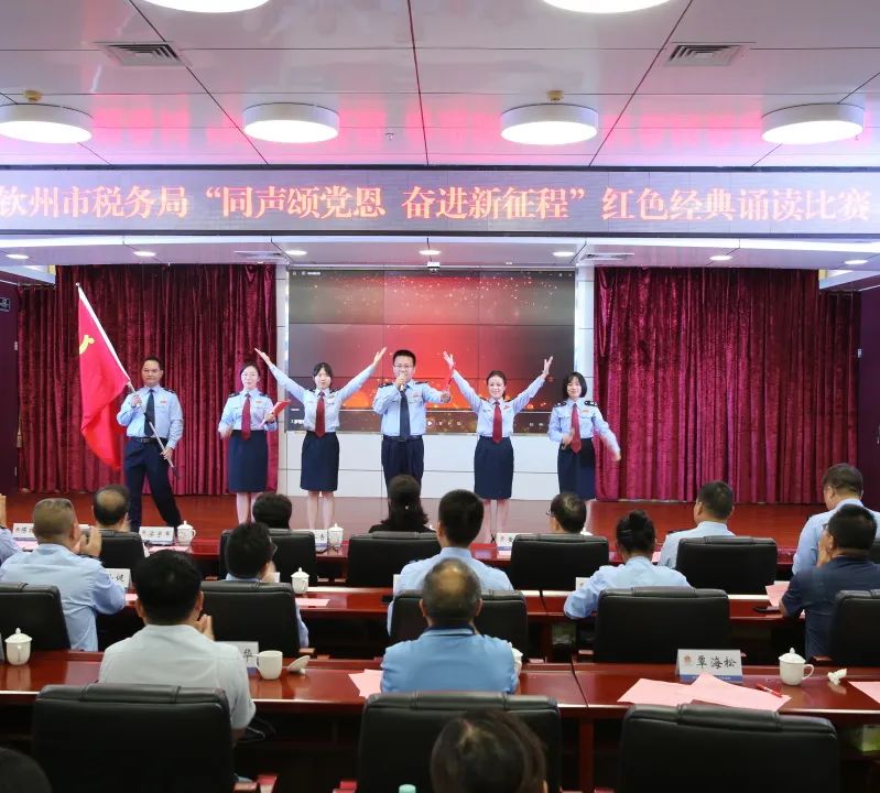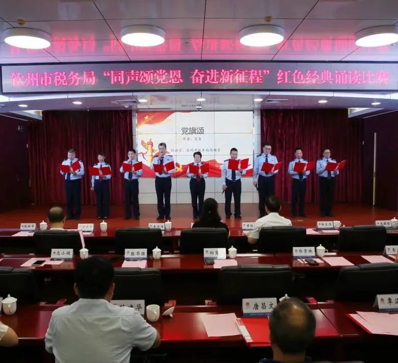 钦州市税务局开展“同声颂党恩 奋进新征程”红色经典诵读活动,局领导以及机关各支部组成的7支队伍分别带来了《党旗颂》《梦想照亮中国》《永远跟党走》等诵读节目。声声诵读铿锵有力,句句颂扬饱含深情,表达了税务干部对党忠诚,听党话、感党恩、跟党走的信心与决心。活动现场,全体党员还重温了入党誓词,为8名党员过集体政治生日,一张贺卡、一份礼物和一段感言,让党员回顾了初心,更诠释了党组织的关怀与希望。