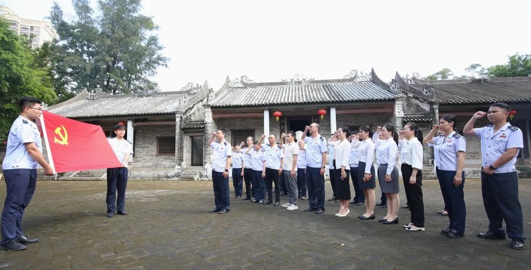 灵山县税务局组织开展预备党员入党宣誓仪式,并到萍塘村红色教育基地开展主题党日活动。预备党员面对鲜红的党旗郑重宣誓,表达对党的深厚感情和庄严承诺。在萍塘村红色教育基地,预备党员们参观了革命史馆、红色讲堂教室等,在红色故事的浸润中坚定对党忠诚的信念。