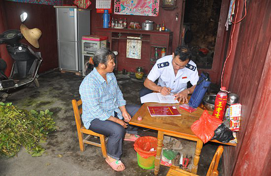 灵川县税务局驻村干部谢晓辉到贫困户家中了解生产生活情况。肖俊毅摄