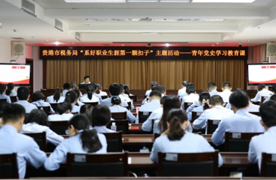 为扎实推进党史学习教育,激发青年干部学史明理、学史增信、学史崇德、学史力行。4月25日下午,贵港市税务局邀请贵港市委党史研究黄明珠主任给青年干部上一堂党史课,号召青年干部以学促行,把中国共产党党员的精神延伸到日常工作中,牢记“全心全意为人民服务”的宗旨,继承和发扬党的优良传统和作风,在党史中汲取前行的力量,在奋发有为中践行初心使命。