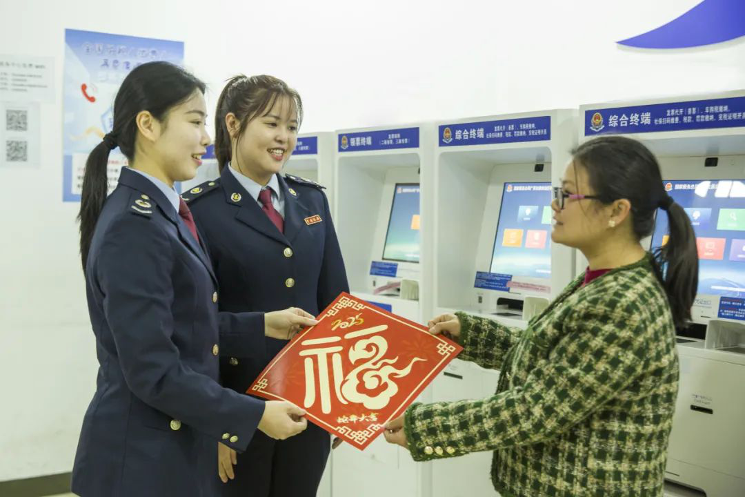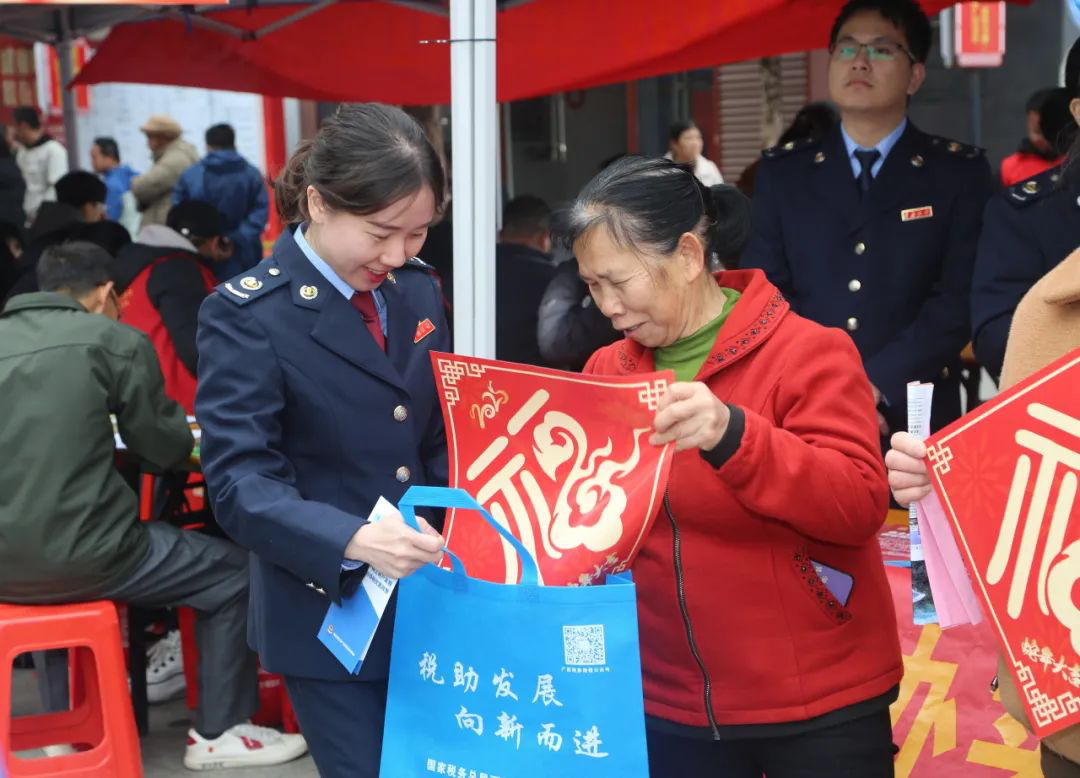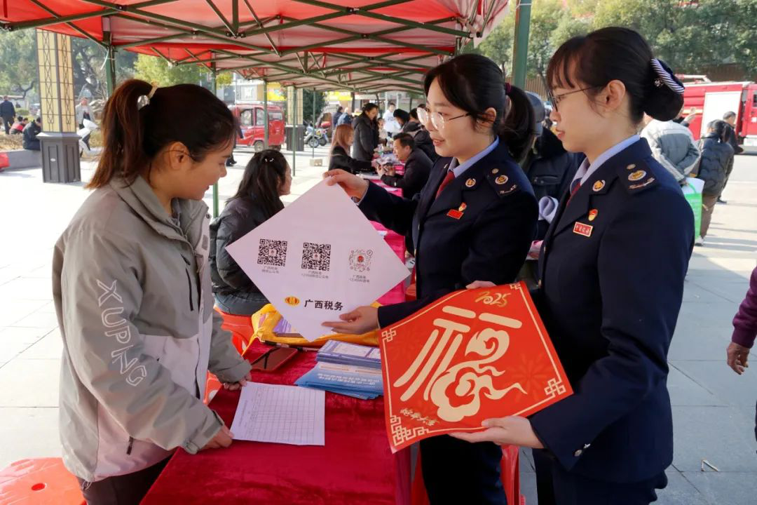 春节临近,旧岁将辞。在2025年新春佳节到来之际,广西税务部门通过走进商超、年货集市等地,以讲政策、解难题、送祝福等方式,向广大纳税人缴费人送上温暖的节日祝福。