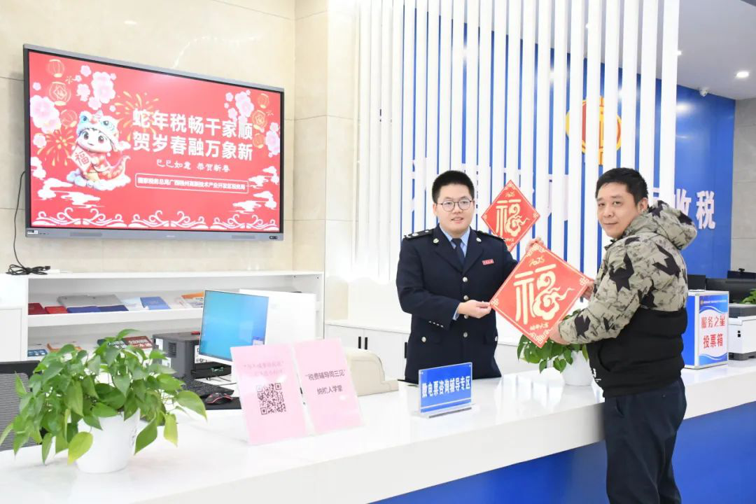 国家税务总局梧州市高新区税务局开展了“税暖人心,春联传情”新春送祝福活动,将浓浓的“年味”融入字里行间,为纳税人送去新年的问候与祝福。