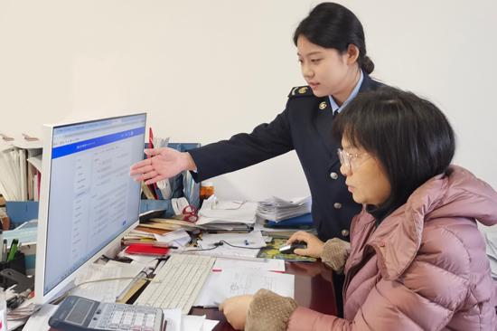 阳朔县税务局工作人员走进张艺谋艺术学校,现场辅导企业开具劳务报酬电子发票。