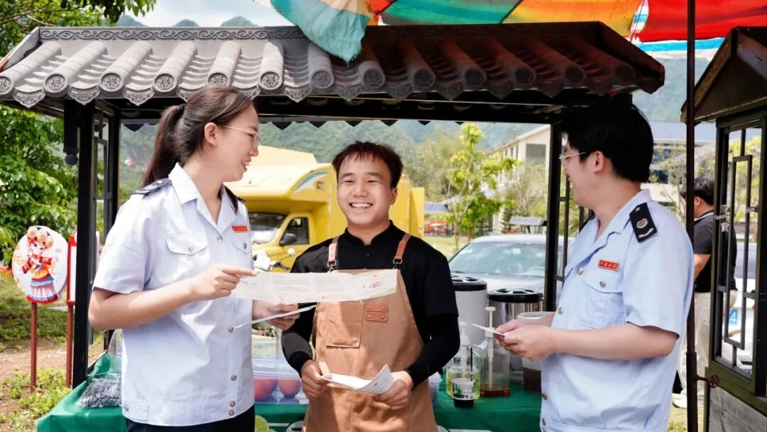 东兰县税务局借助民俗文旅盛会,走进坡豪湖国家湿地公园,依托景区人流密集优势集中开展税法宣传,为景区商户、流动经营主体、来往游客解答发票开具、社保缴纳等问题,进一步烘托诚信纳税良好社会氛围。(李美香 摄)