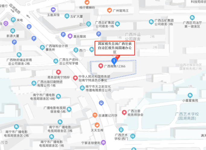 广西南宁市青秀区园湖南路26号国家税务总局广西壮族自治区税务局纳税服务中心 | ||